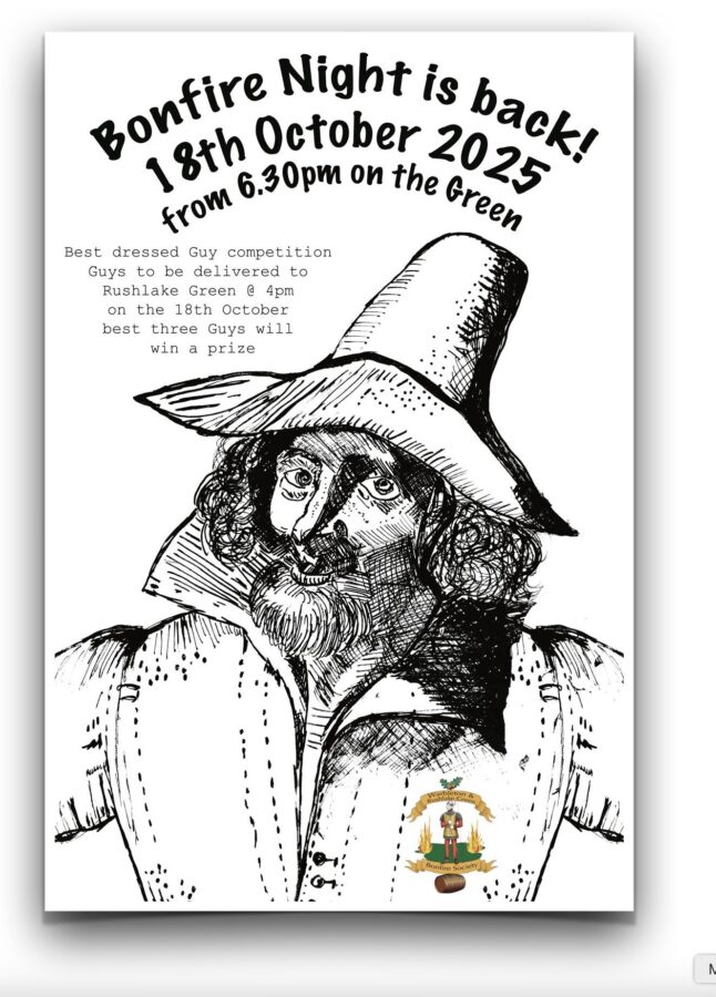 Entries for the best dressed Guy competition to be delivered to Rushlake Green at 4pm on the 18th October. Best three Guys will win a prize.