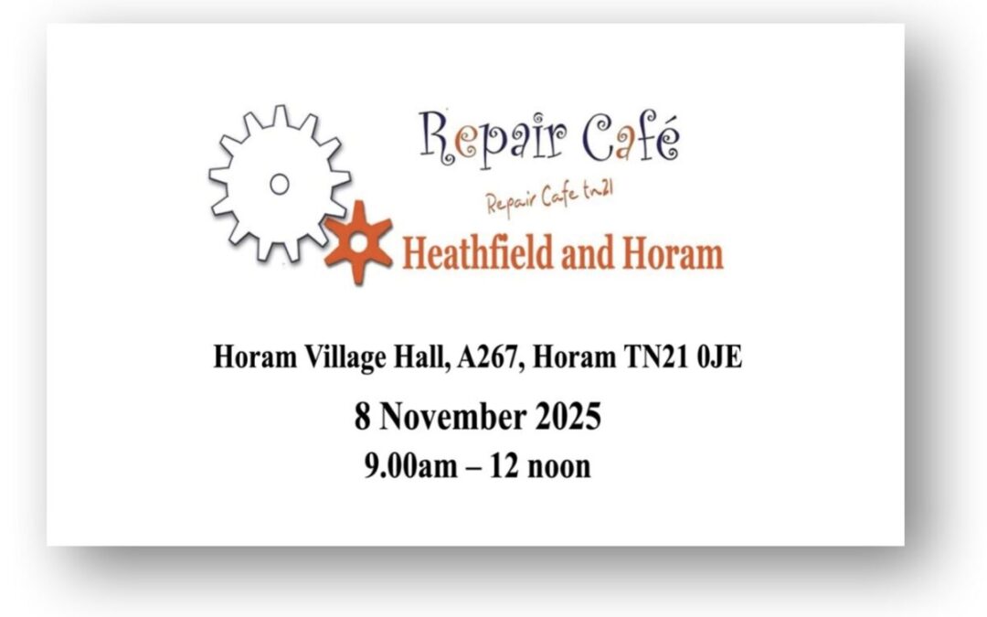 The Heathfield & Horam Repair Café makes a welcome return to the Horam Village Hall on Saturday 8th November from 9.00am until 12.00 noon. The team of enthusiastic and capable repair operatives offer to take on virtually any repair challenge, including but not limited to: electrical Items, computers, furniture, ceramics, bicycles, sewing, clocks and much more. Tea or coffee and cake just £2.50.