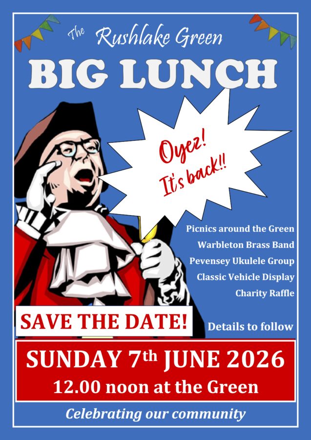 The hugely popular Rushlake Green BIG LUNCH is back, on Sunday 7th June, for another brilliant community event on and around Rushlake Green. As always there will be live music, classic vehicles on display, a charity raffle and plenty of space at the community picnic table and on the green. Save the date and don’t miss this highlight of the Rushlake Green calender.